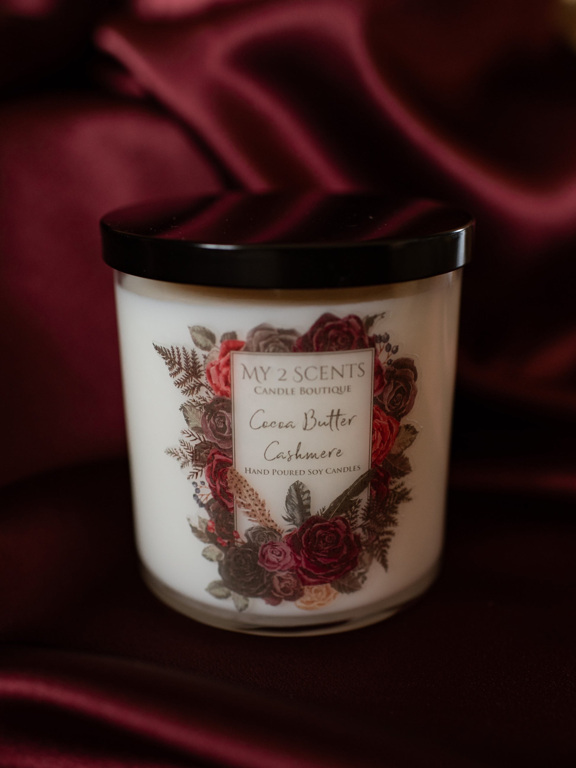 Creamy, Cozy, and Comforting are the words that come to mind while burning our Cocoa Butter Cashmere candle. It has the warmth of cedar wood, sweetness of vanilla, the coziness of light musk and cocoa butter, and the richness of tonka bean and golden amber.
